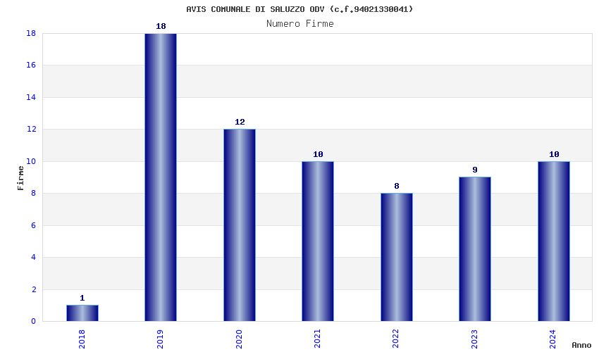 | Anno | Firme | Importi | Media | Naz. | Reg. | Prov. | Comu. |