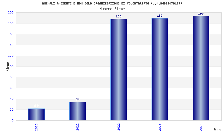 | Anno | Firme | Importi | Media | Naz. | Reg. | Prov. | Comu. |