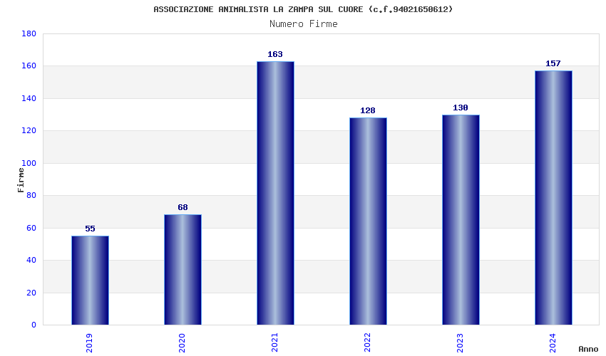| Anno | Firme | Importi | Media | Naz. | Reg. | Prov. | Comu. |