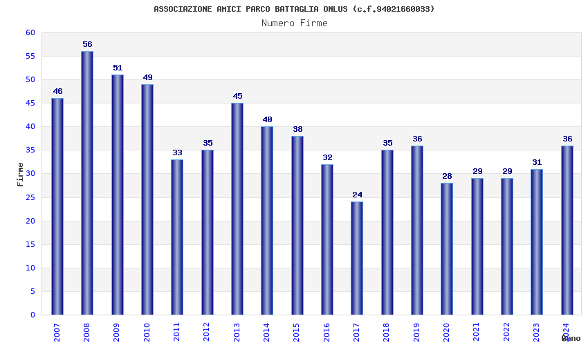 Anno Firme Importi Media Naz. Reg. Prov. Comu.