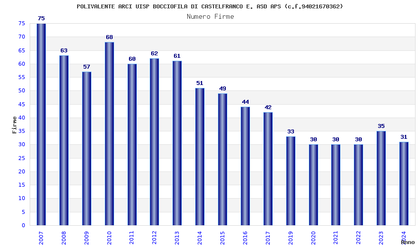 | 2007 | 75 | 1.602,91 | 21,37 | 14.301 | 1.345 | 200 | 5 |