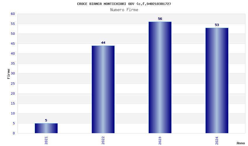 | Anno | Firme | Importi | Media | Naz. | Reg. | Prov. | Comu. |