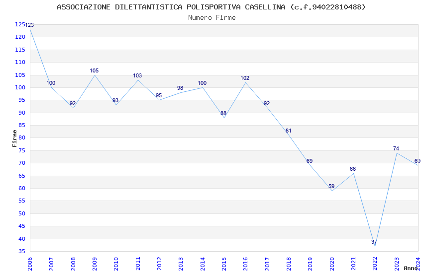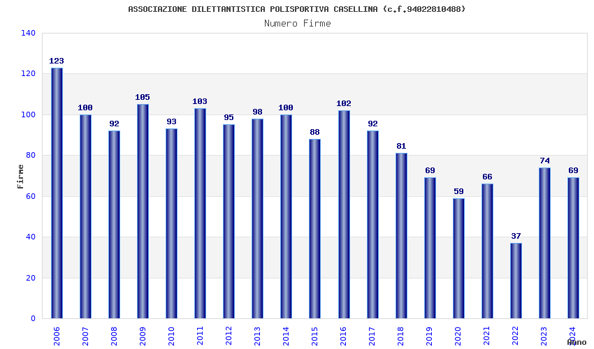| 2023 | 74 | 2.479,80 | 33,51 | 20.120 | 1.247 | 405 | 15 |