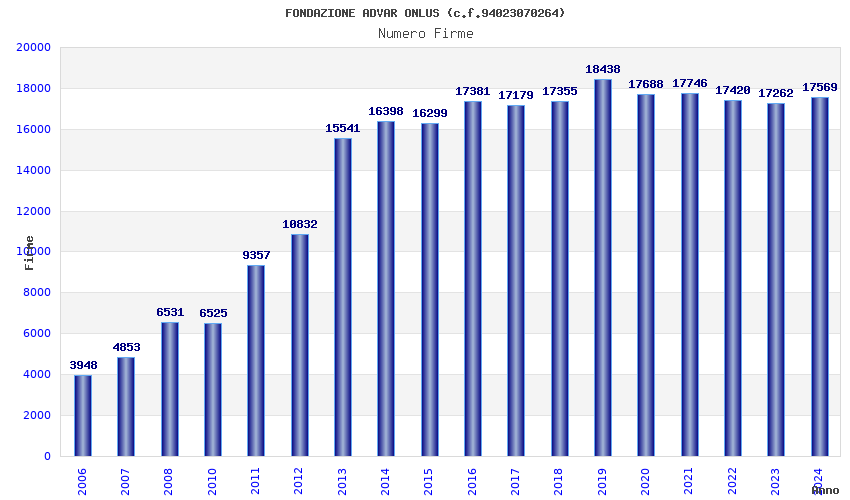 | Anno | Firme | Importi | Media | Naz. | Reg. | Prov. | Comu. |