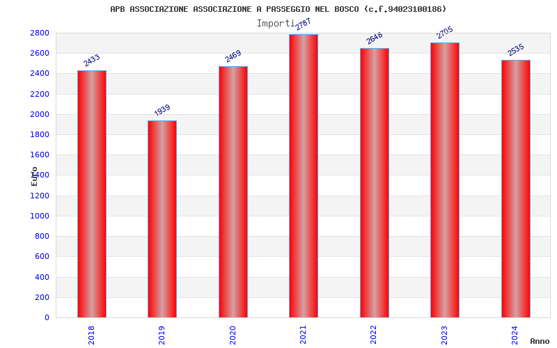 | Anno | Firme | Importi | Media | Naz. | Reg. | Prov. | Comu. |