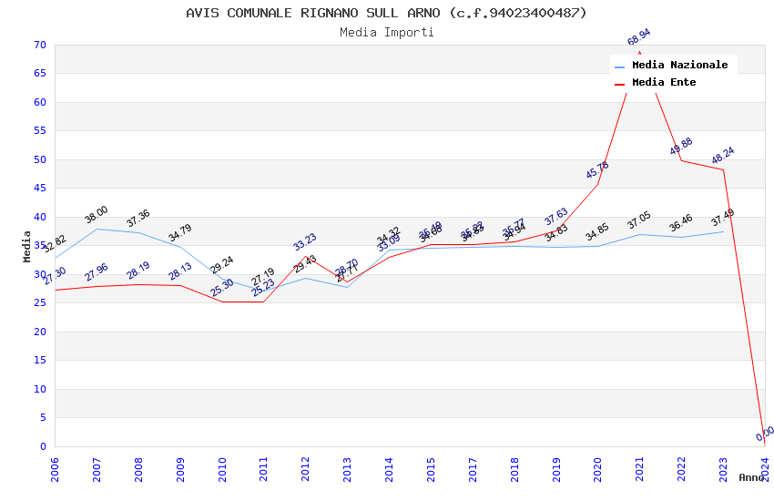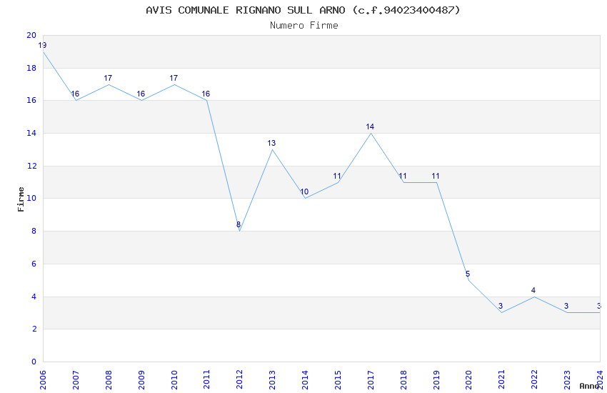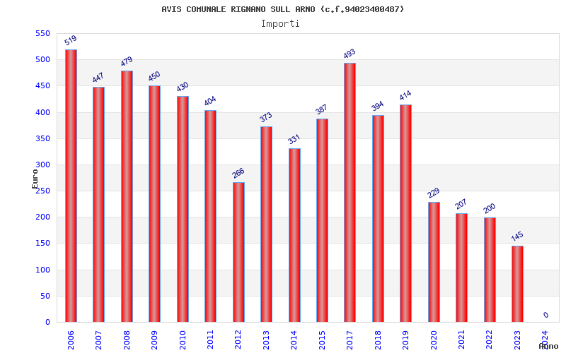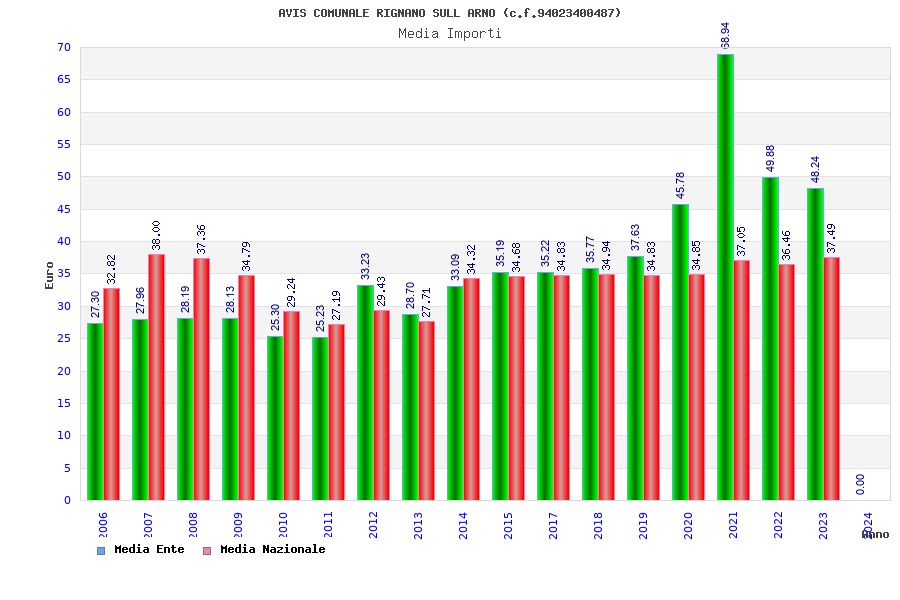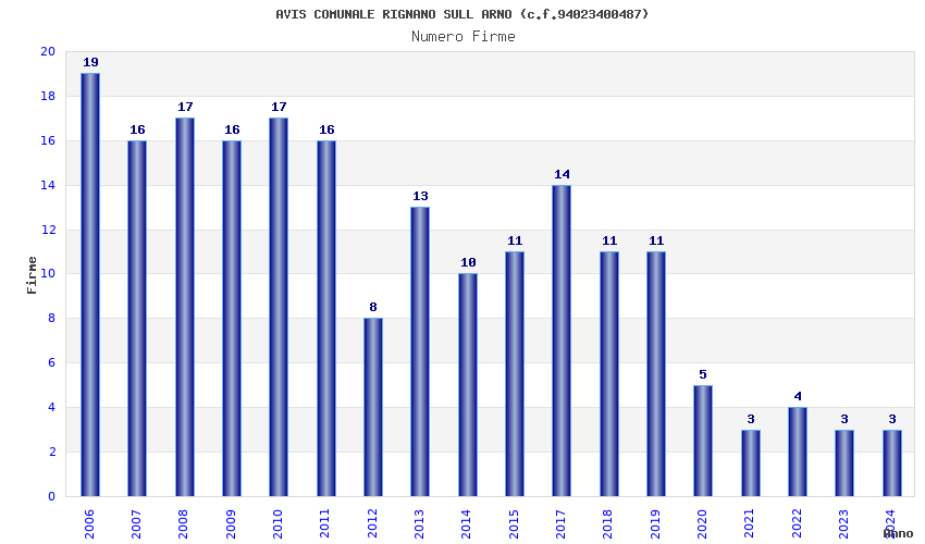 | Anno | Firme | Importi | Media | Naz. | Reg. | Prov. | Comu. |