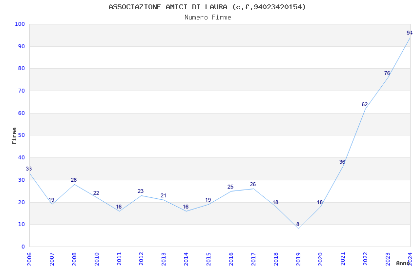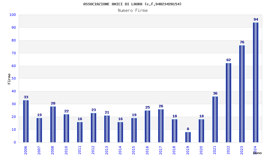 | Anno | Firme | Importi | Media | Naz. | Reg. | Prov. | Comu. |