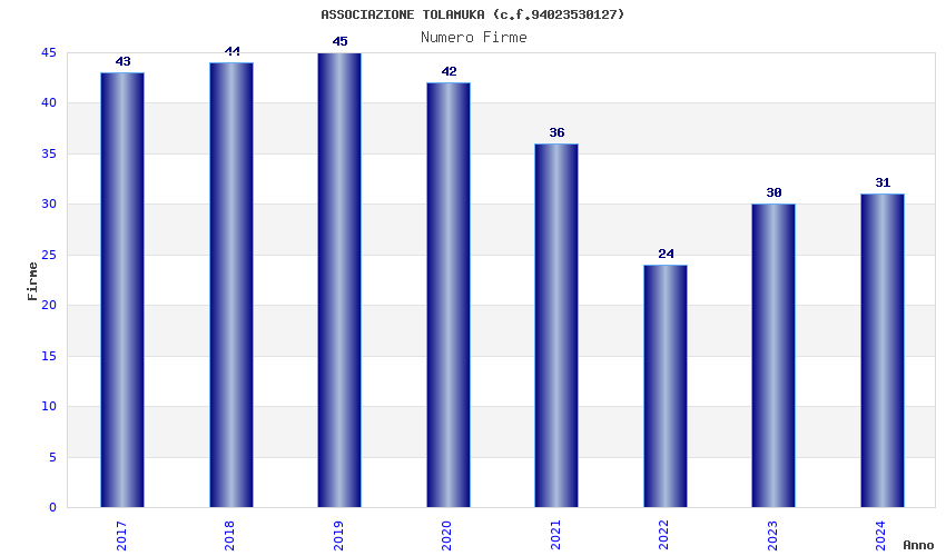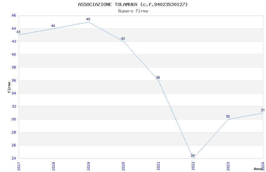 | 2017 | 43 | 2.827,26 | 65,75 | 18.306 | 4.178 | 356 | 22 |