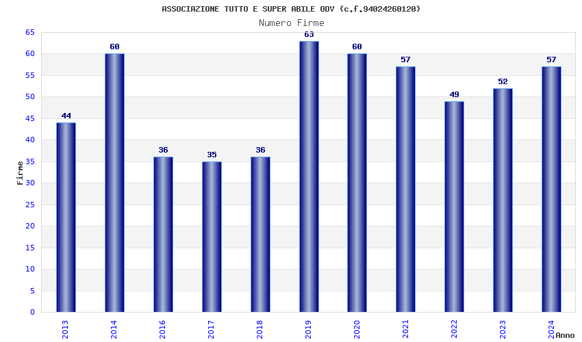 | Anno | Firme | Importi | Media | Naz. | Reg. | Prov. | Comu. |