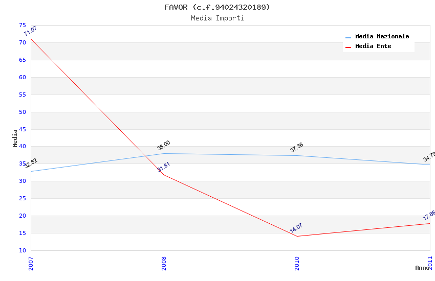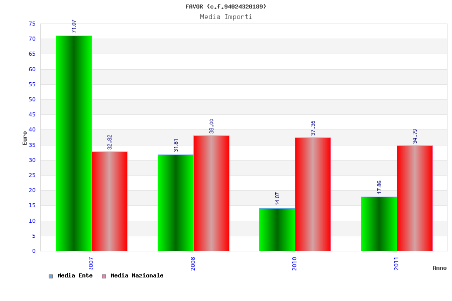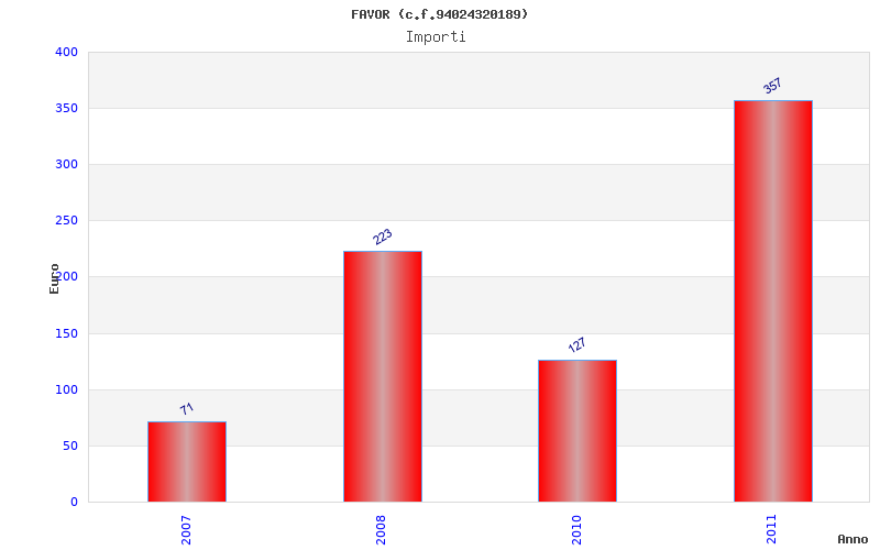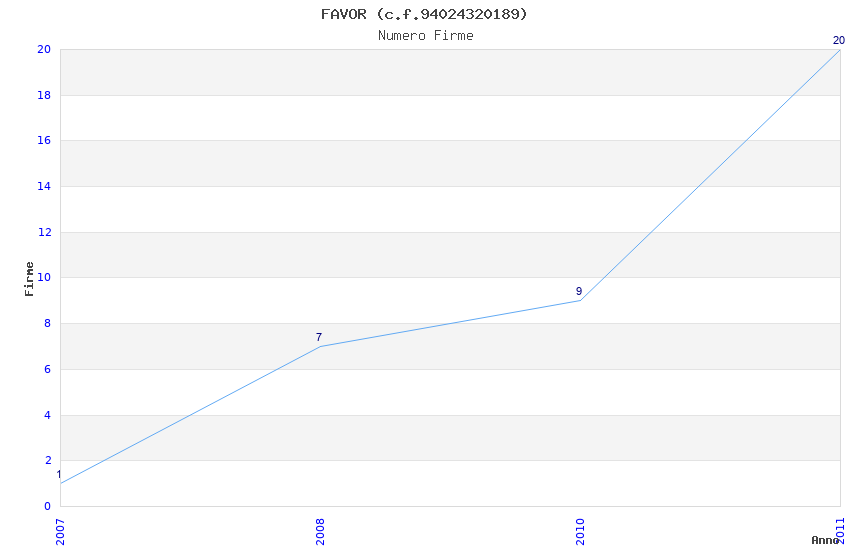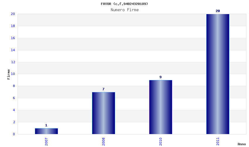 | Anno | Firme | Importi | Media | Naz. | Reg. | Prov. | Comu. |