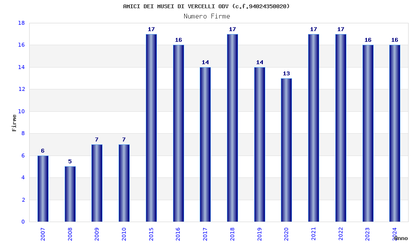 | Anno | Firme | Importi | Media | Naz. | Reg. | Prov. | Comu. |