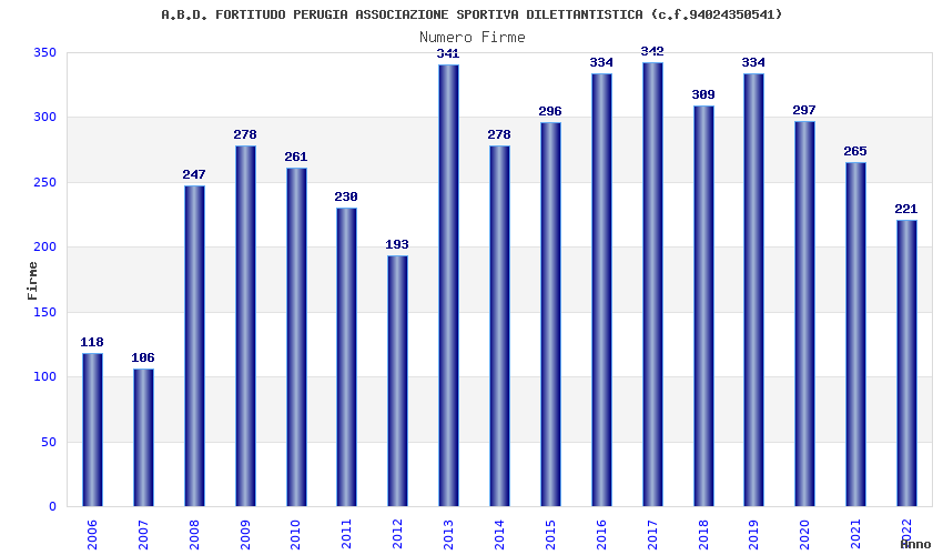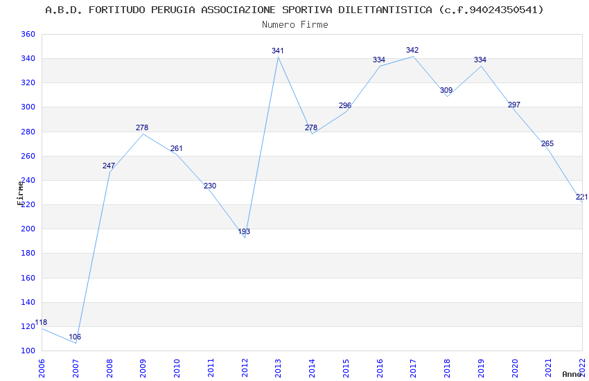| 2019 | 334 | 8.697,31 | 26,04 | 6.130 | 79 | 64 | 27 |