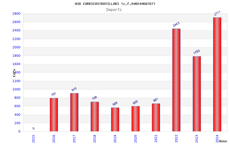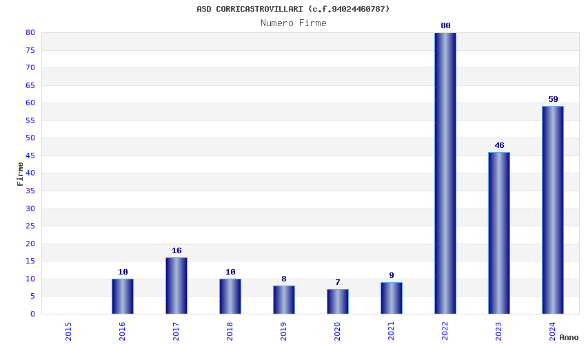 | Anno | Firme | Importi | Media | Naz. | Reg. | Prov. | Comu. |