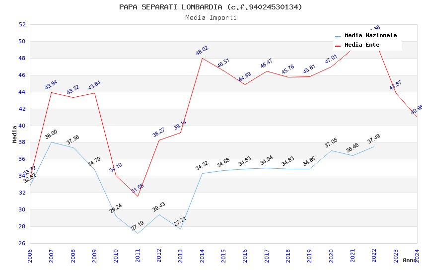 | Anno | Firme | Importi | Media | Naz. | Reg. | Prov. | Comu. |