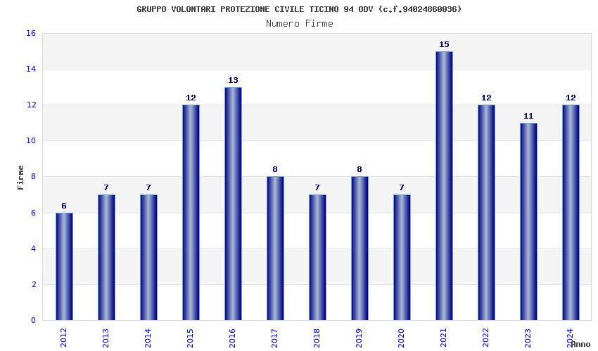 | Anno | Firme | Importi | Media | Naz. | Reg. | Prov. | Comu. |