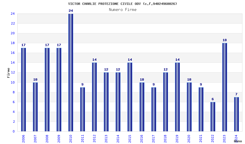 | Anno | Firme | Importi | Media | Naz. | Reg. | Prov. | Comu. |