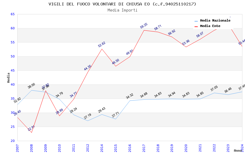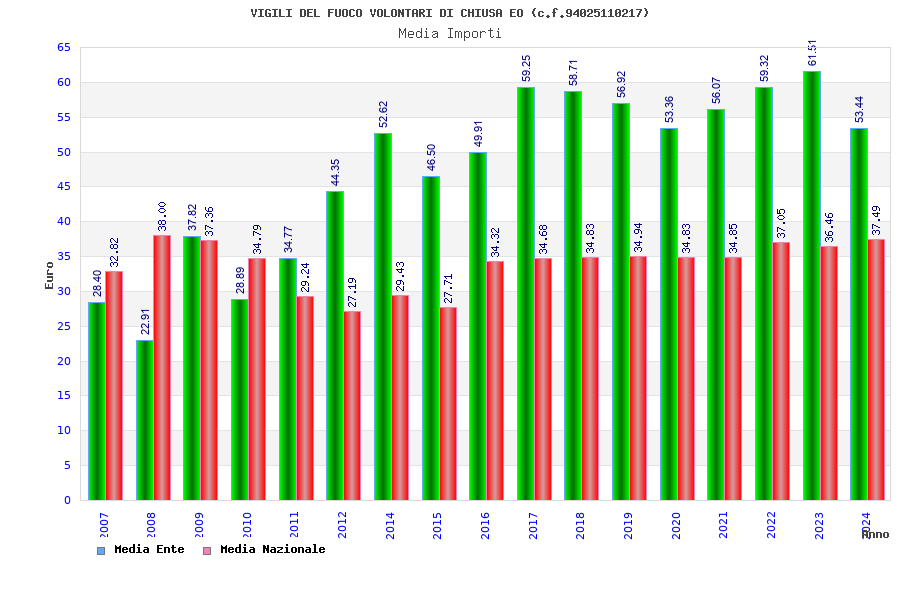 | Anno | Firme | Importi | Media | Naz. | Reg. | Prov. | Comu. |