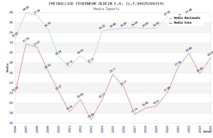 | Anno | Firme | Importi | Media | Naz. | Reg. | Prov. | Comu. |