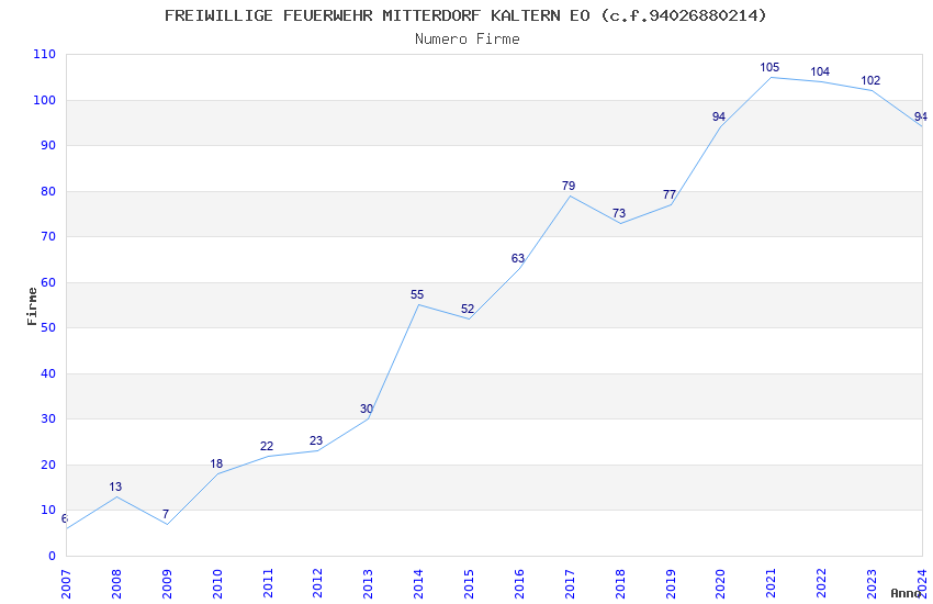 | 2021 | 105 | 3.474,65 | 33,09 | 15.525 | 374 | 203 | 3 |