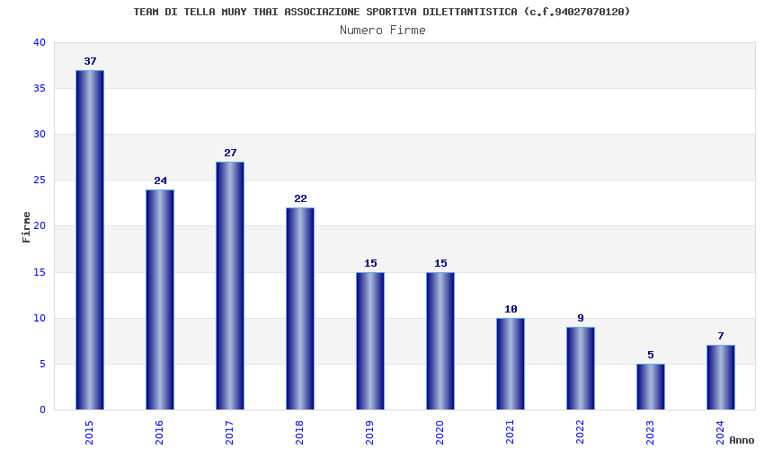 | Anno | Firme | Importi | Media | Naz. | Reg. | Prov. | Comu. |