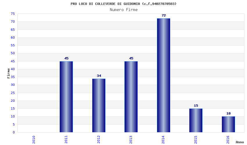 | Anno | Firme | Importi | Media | Naz. | Reg. | Prov. | Comu. |