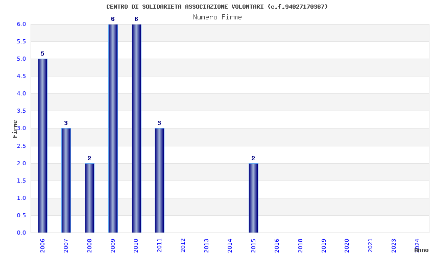 | Anno | Firme | Importi | Media | Naz. | Reg. | Prov. | Comu. |