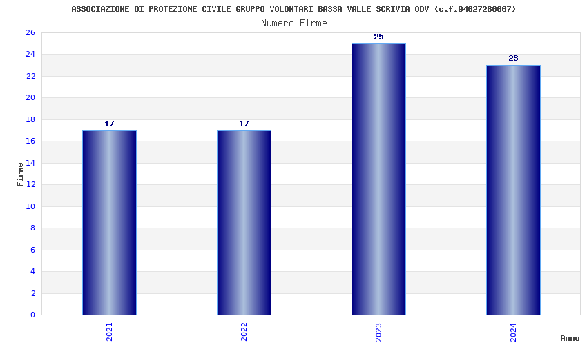 | Anno | Firme | Importi | Media | Naz. | Reg. | Prov. | Comu. |