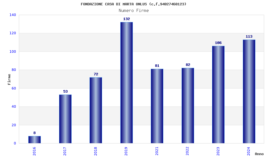 | Anno | Firme | Importi | Media | Naz. | Reg. | Prov. | Comu. |