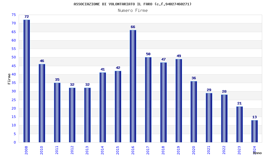 | Anno | Firme | Importi | Media | Naz. | Reg. | Prov. | Comu. |