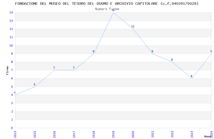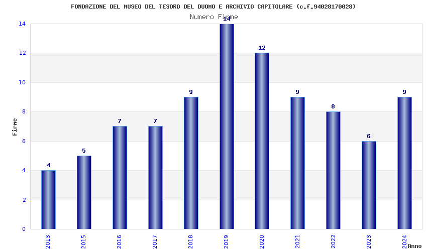 | Anno | Firme | Importi | Media | Naz. | Reg. | Prov. | Comu. |