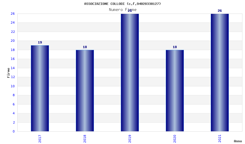| Anno | Firme | Importi | Media | Naz. | Reg. | Prov. | Comu. |