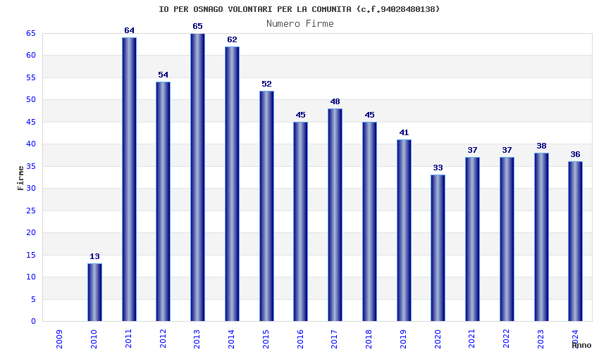| Anno | Firme | Importi | Media | Naz. | Reg. | Prov. | Comu. |