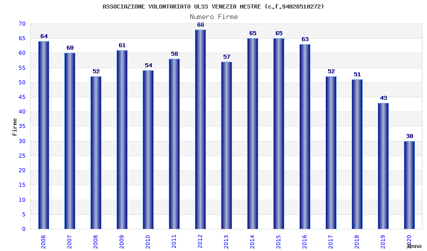 | Anno | Firme | Importi | Media | Naz. | Reg. | Prov. | Comu. |