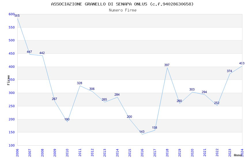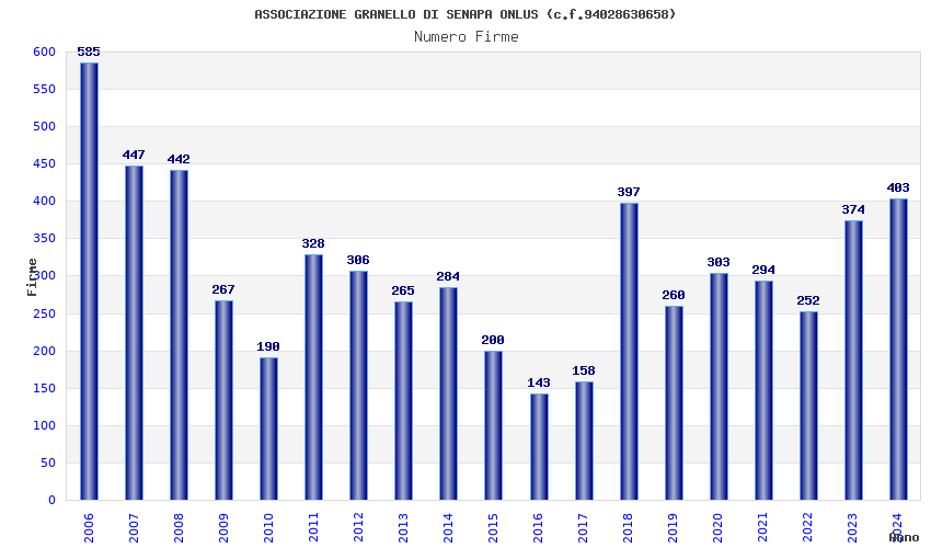 | Anno | Firme | Importi | Media | Naz. | Reg. | Prov. | Comu. |