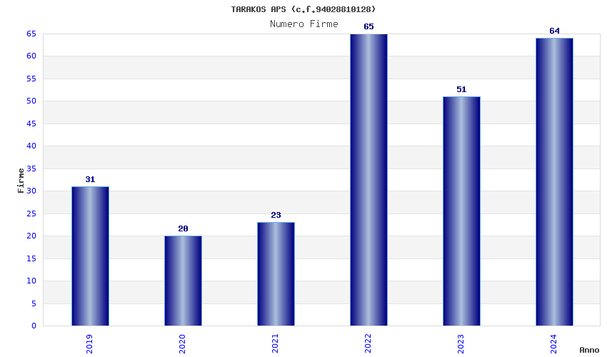 | Anno | Firme | Importi | Media | Naz. | Reg. | Prov. | Comu. |