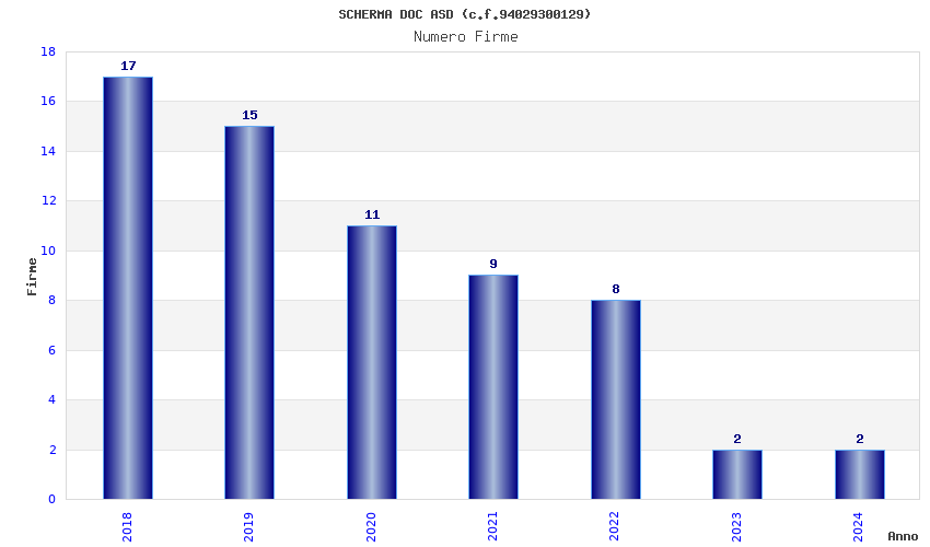 | 2018 | 17 | 651,43 | 38,32 | 41.494 | 8.705 | 790 | 46 |
