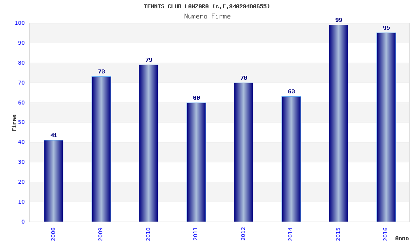 | Anno | Firme | Importi | Media | Naz. | Reg. | Prov. | Comu. |