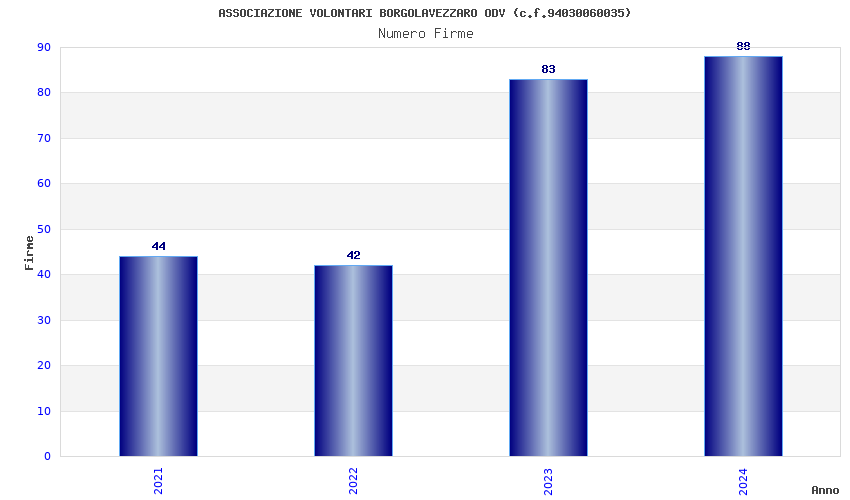 | Anno | Firme | Importi | Media | Naz. | Reg. | Prov. | Comu. |