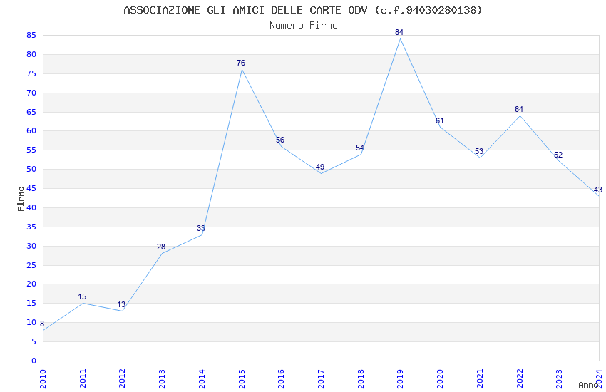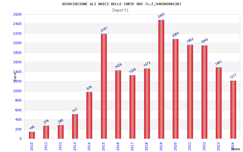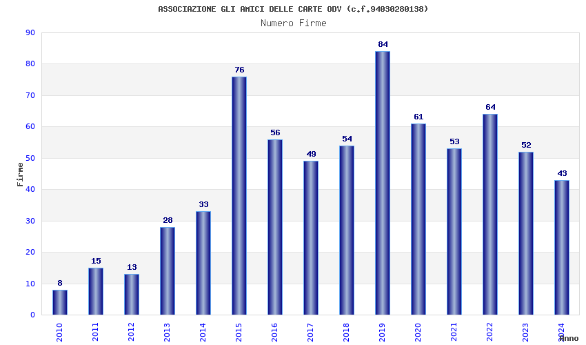 | Anno | Firme | Importi | Media | Naz. | Reg. | Prov. | Comu. |