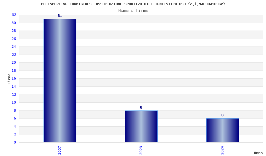 | Anno | Firme | Importi | Media | Naz. | Reg. | Prov. | Comu. |