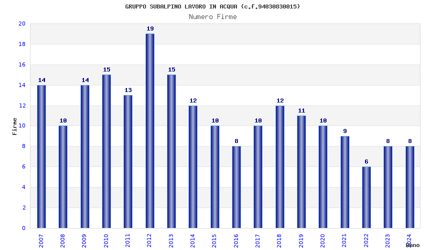 | Anno | Firme | Importi | Media | Naz. | Reg. | Prov. | Comu. |