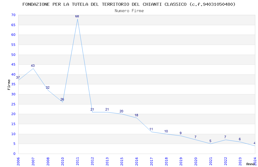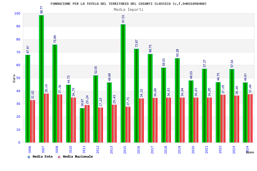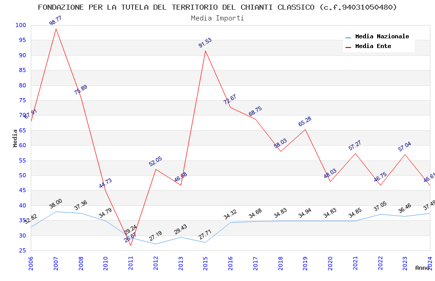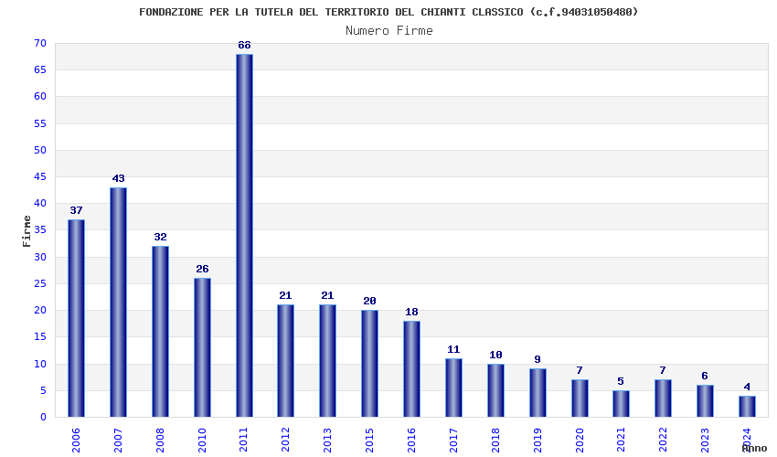 | Anno | Firme | Importi | Media | Naz. | Reg. | Prov. | Comu. |
