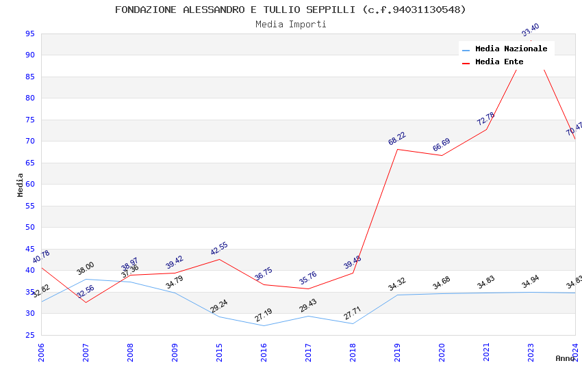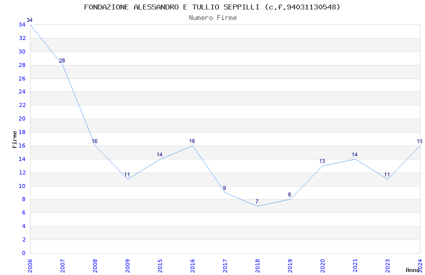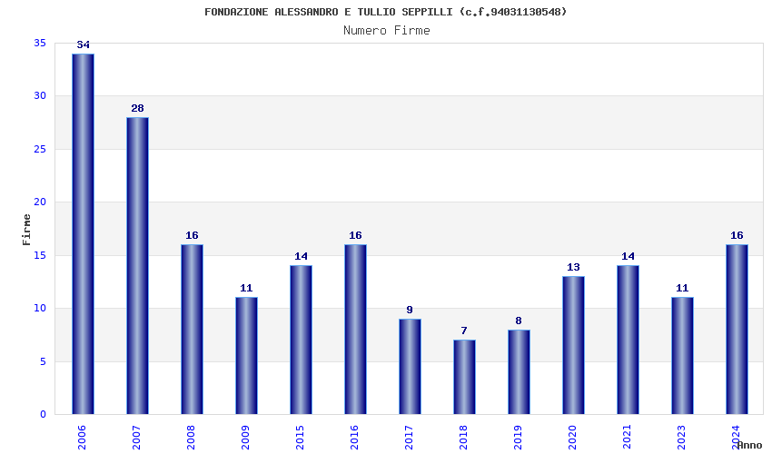 | Anno | Firme | Importi | Media | Naz. | Reg. | Prov. | Comu. |