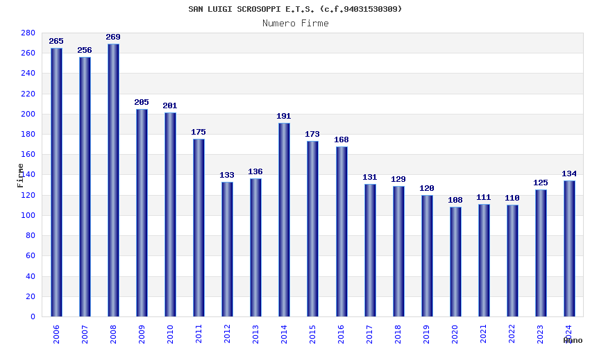 | Anno | Firme | Importi | Media | Naz. | Reg. | Prov. | Comu. |