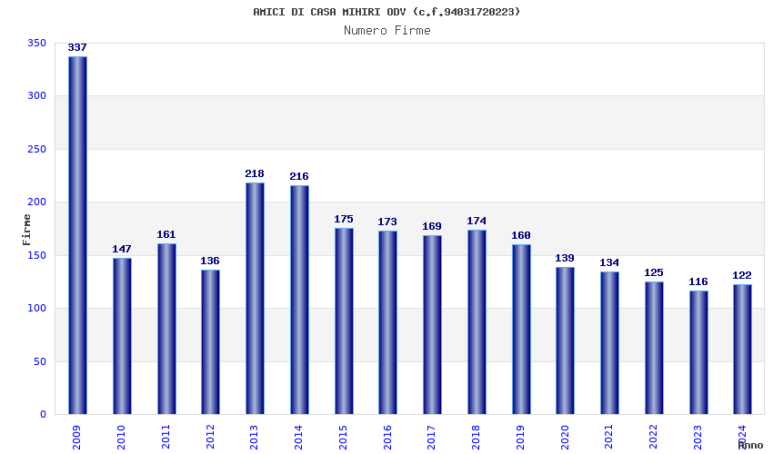 | 2009 | 337 | 8.422,16 | 24,99 | 5.342 | 98 | 50 | 7 |