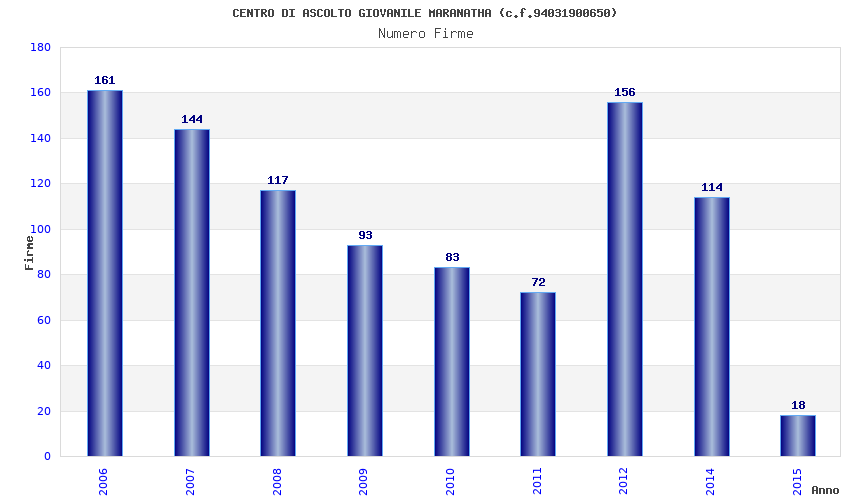 | Anno | Firme | Importi | Media | Naz. | Reg. | Prov. | Comu. |