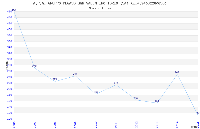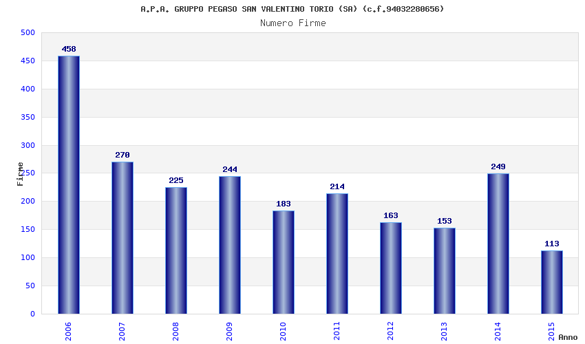 | Anno | Firme | Importi | Media | Naz. | Reg. | Prov. | Comu. |