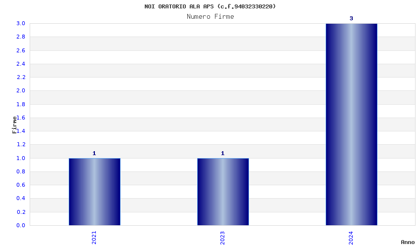 | Anno | Firme | Importi | Media | Naz. | Reg. | Prov. | Comu. |