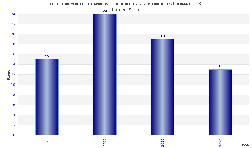 | Anno | Firme | Importi | Media | Naz. | Reg. | Prov. | Comu. |