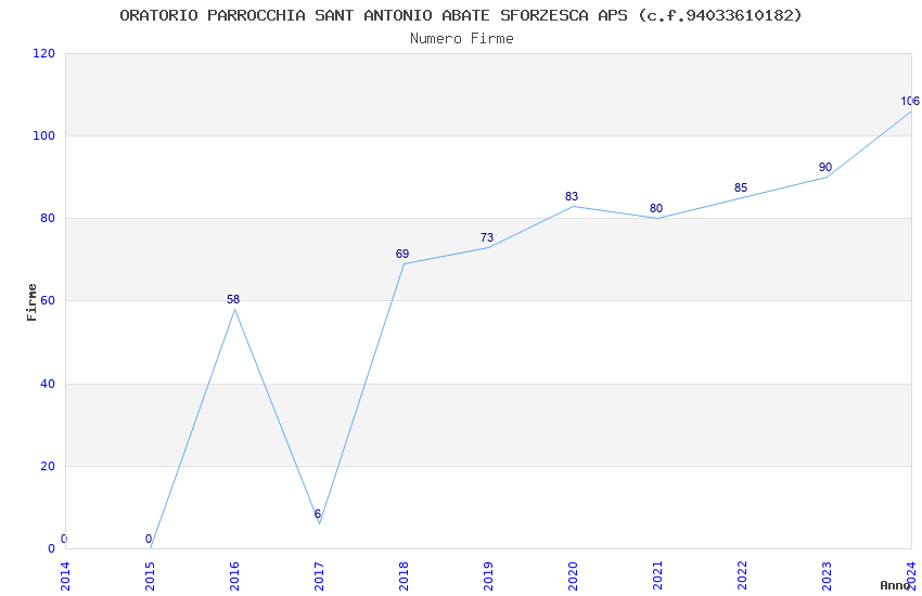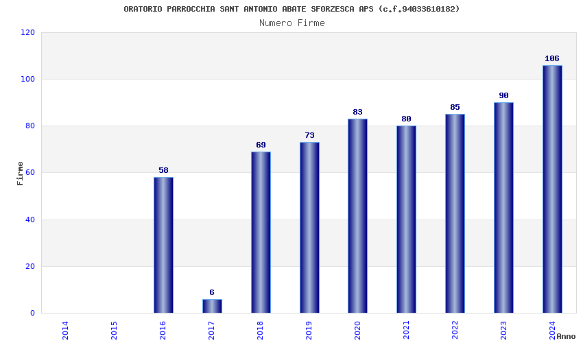 | Anno | Firme | Importi | Media | Naz. | Reg. | Prov. | Comu. |